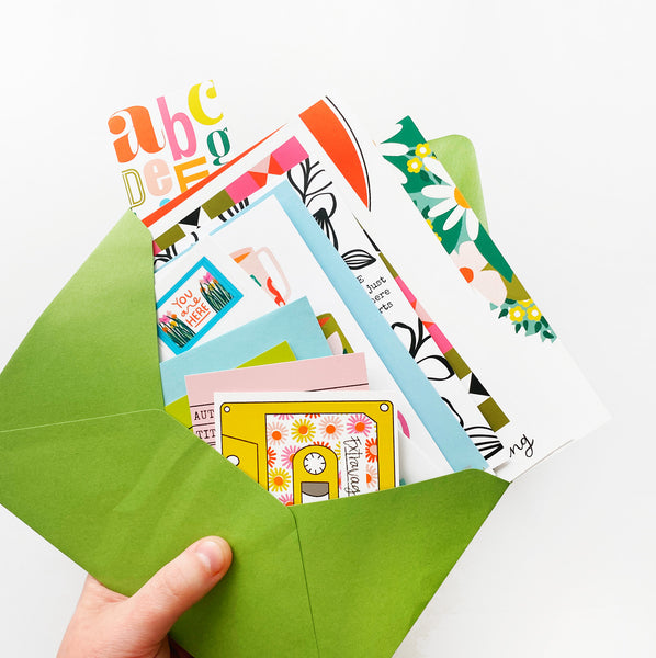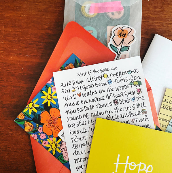 I'm sharing a few peeks of some of the goodness included in a previous mailing in the listing photos to give you an idea of what types of things might arrive for you, but each month's envelope won't be revealed until after they've shipped, because what's more fun than the surprise of seeing hope tumble out of an envelope by way of art and stationery? If we're friends on Instagram, or you love my newsletter, The Pigeon Post, this mailing is like getting to bring all those things I love, and love to share with you, to life. I can't want to send hope your way.